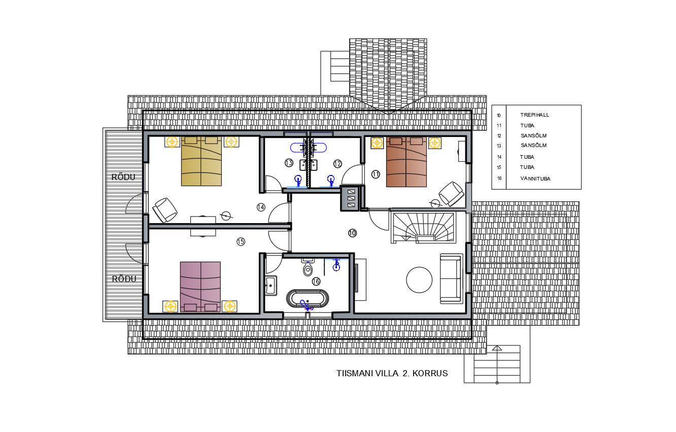 Voit varata joko yhden huoneen tai koko talon kerrallaan. Villassa on viisi makuuhuonetta. Jokaisessa huoneessa on kaksi vuodepaikkaa ja oma suihkuhuone. Yhteen huoneeseen kuuluu myös kylpyamme.